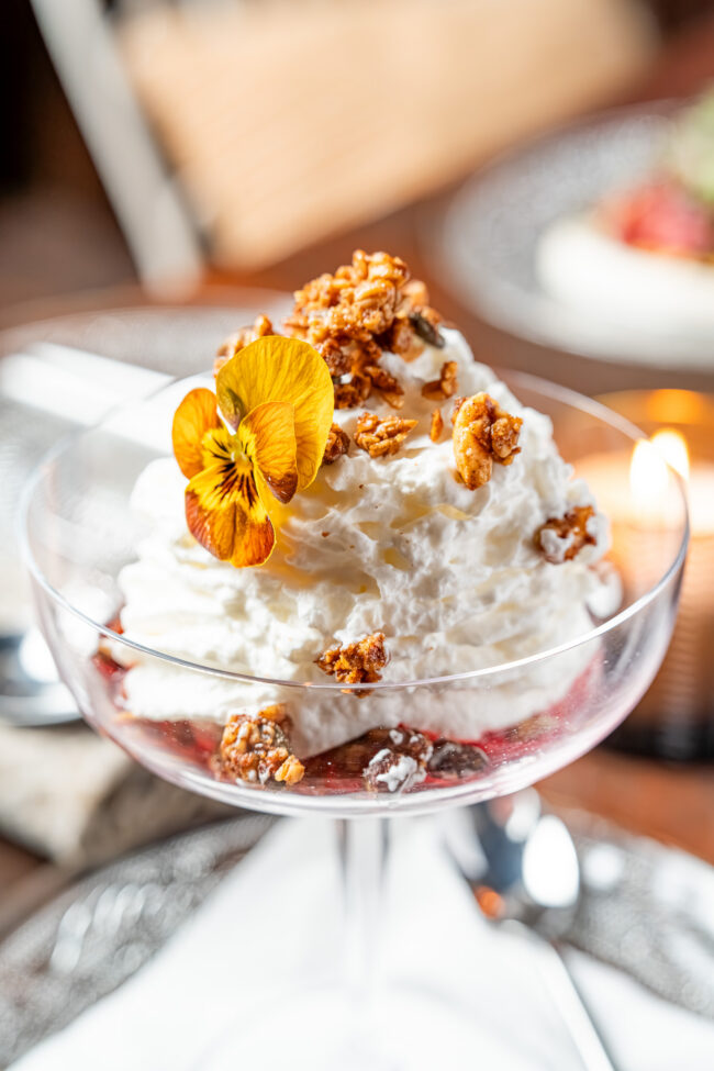 Coconut Cloud with Amarena Cherries, Ice Cream and Ginger Granola