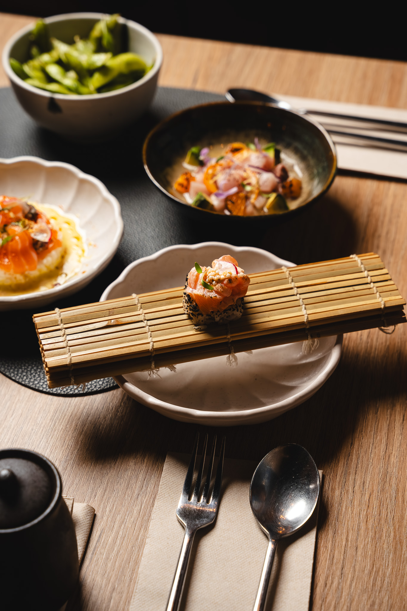 Una propuesta creada especialmente para Restaurant Week, donde exploramos el final del invierno en Mallorca desde nuestra mirada Nikkei. El menú combina producto local y de temporada con técnicas japonesas y sabores peruanos: cítricos de invierno, crudos precisos y un principal de carne con profundidad y carácter. Un recorrido equilibrado, honesto y muy personal, que refleja nuestra forma de entender la cocina: identidad, territorio y sabor, sin artificios.