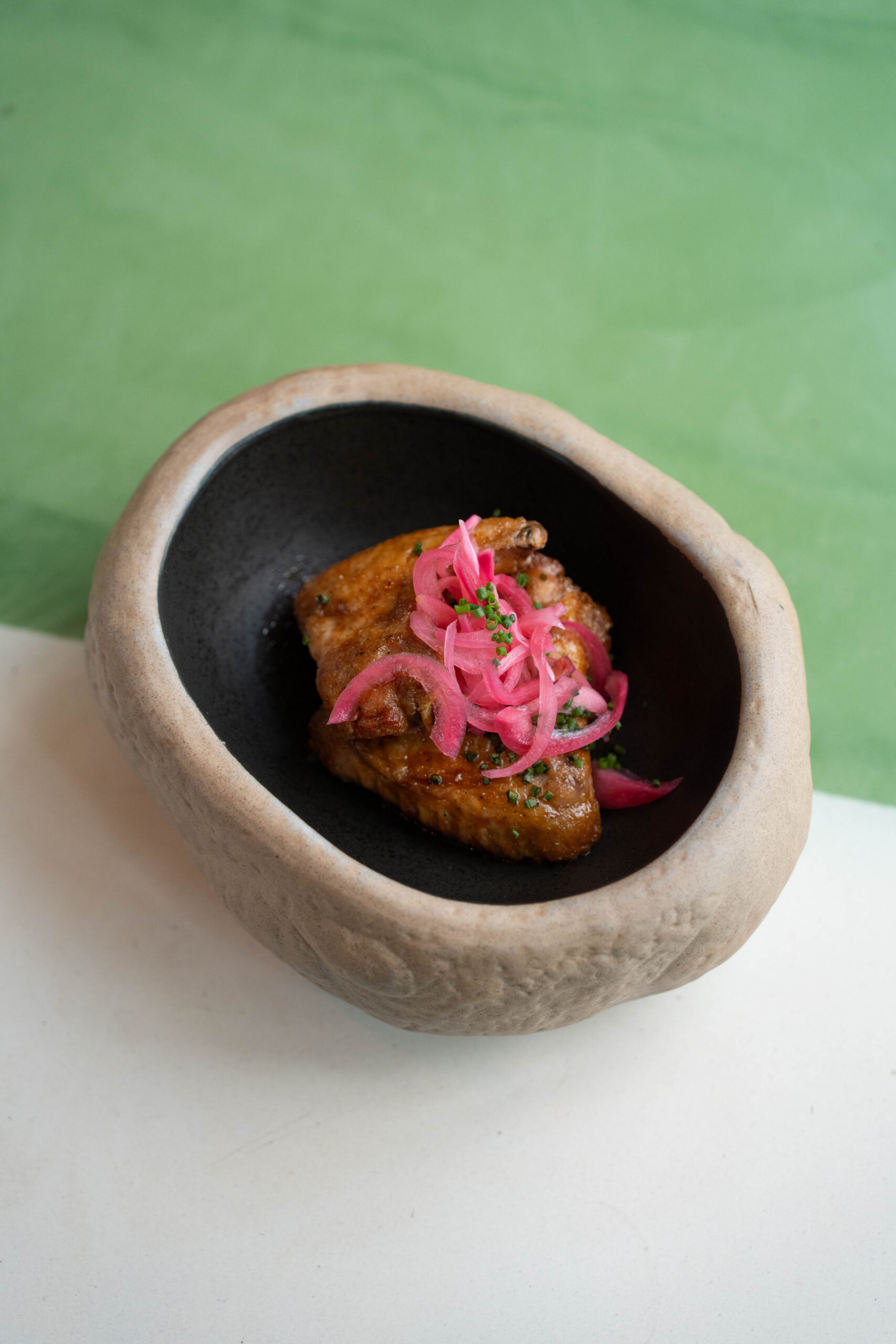 Saam de torreznos con ensalada de brotes con mayonesa de sriracha